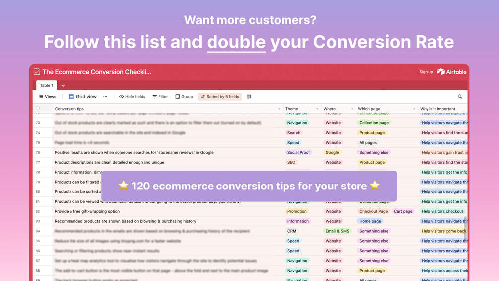 In this checklist, I listed 120 conversion tips to increase your ecommerce conversion rate, get more customers and increase revenue.